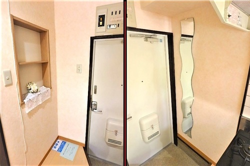 全戸これまであった押し入れをクローゼットに変更。内装は全面にクロス張りにしました。これで大切な衣類もオシャレに収納できます。また、玄関口にはニッチ棚と全身姿見鏡を設置。オシャレなエントランスが演出できます。
