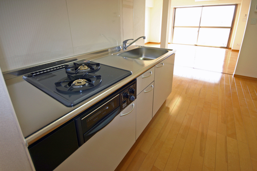ビルドインの2口ガスコンロが装備されています。魚焼き用のグリル付きなので、お料理上手の女性にとって幅広いレシピにチャレンジ可能。シンクも広く、清潔で安心です。