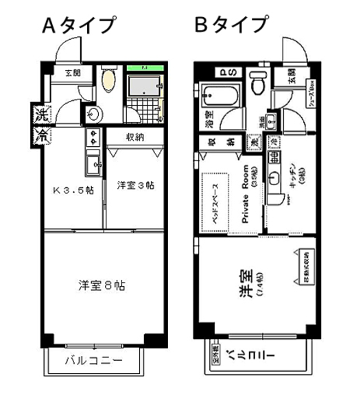 ●Aタイプ(101、201、301、401)とBタイプ(102、202、203、302、303、402、403)の2種類がありますが、広さは33.26平米と変わりません。
